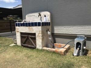 ガーデンシンクとは、屋外用の流し台のことです。 蛇口と流し台がセットになっており、収納スペースがあるものやデザインにこだわりがあるものなどさまざま。 蛇口の種類も豊富にあり、使用していない際にもお庭を美しく見せる演出のひとつとして、ガーデニング好きの方などには特に人気があります。